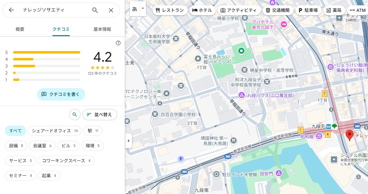 九段下駅からこんな近くにシェアオフィスがあることを初めて知りました。日曜日だったので、裏口から入ることを知らず苦労しました。